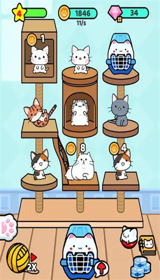 Merge cats with the same attributes and shapes, improve and upgrade, and experience new joy in the cat apartment;